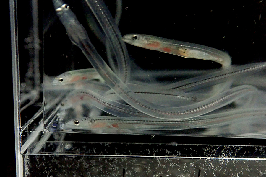 霞ケ浦北浦では、近年の高水温による魚類資源減少が主因と考えられる深刻な不漁が続いており、早期の資源回復は難しい状況にあります。そこで、高水温に耐性のある水産資源の確保を目的として、高水温に比較的強く、市場価値も高いうなぎの種苗放流による資源増大効果の実証を行います。