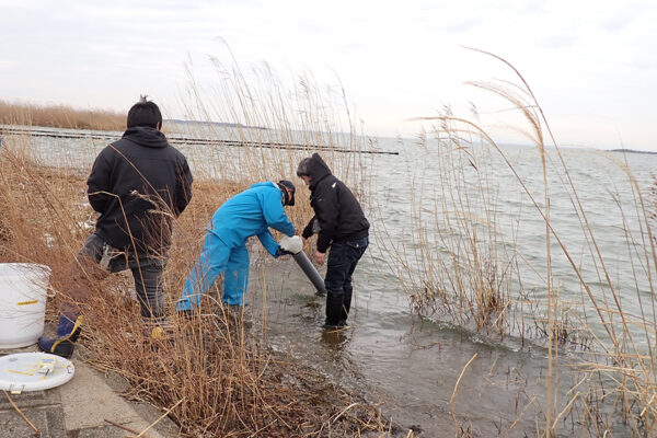 霞ケ浦北浦では、近年の高水温による魚類資源減少が主因と考えられる深刻な不漁が続いており、早期の資源回復は難しい状況にあります。そこで、高水温に耐性のある水産資源の確保を目的として、高水温に比較的強く、市場価値も高いうなぎの種苗放流による資源増大効果の実証を行います。